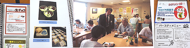 栄養科の横田さんが持参したファイルには、これまで作成したレシピやポスター等、